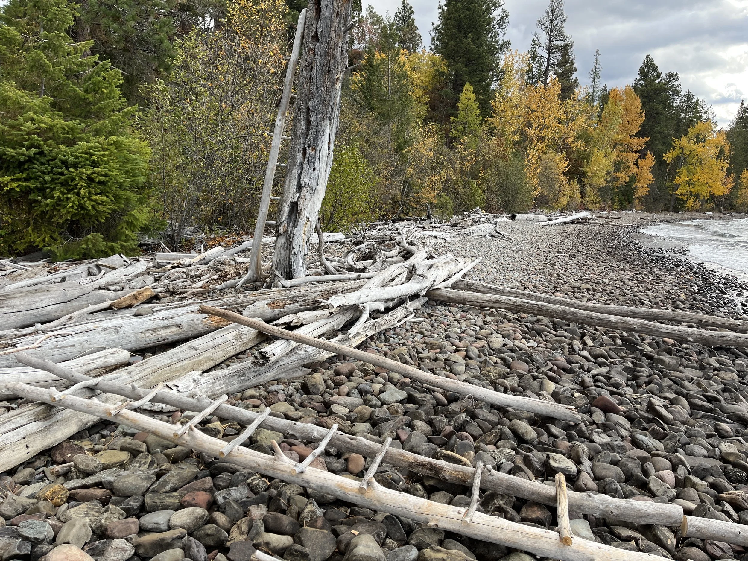Driftwood Ladder was designed, created, installed, and disassembled all on site at Flathead Lake. A tool to inspire exploration, the ladder invites visitors to seek out new vantage points. Once disassembled, the only trace of the installation were the hand-cut half laps created in the construction process, left on the driftwood pieces, in the piles that they were found in.
